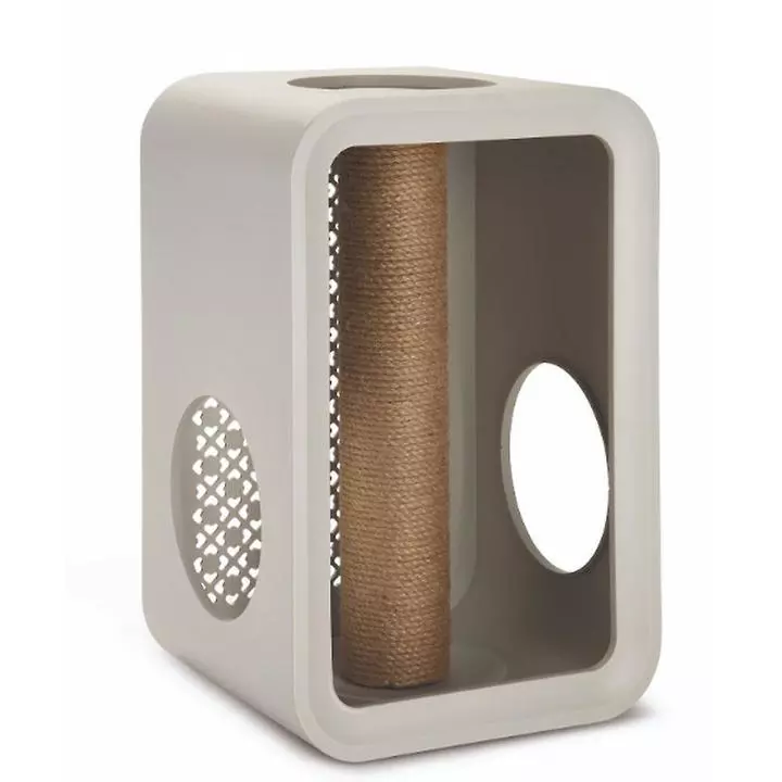 In this open cabin, your cat can scratch the scratching post to its heart’s content. You can fasten the scratching post in the middle of the cube, and place the cube both horizontally and vertically.