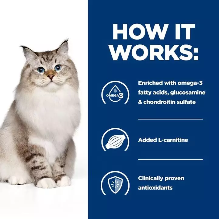 Hill’s Prescription Diet j/d is clinically proven dietetic food for cats with mobility issues. It is clinically proven to help cats be more active in 28 days.