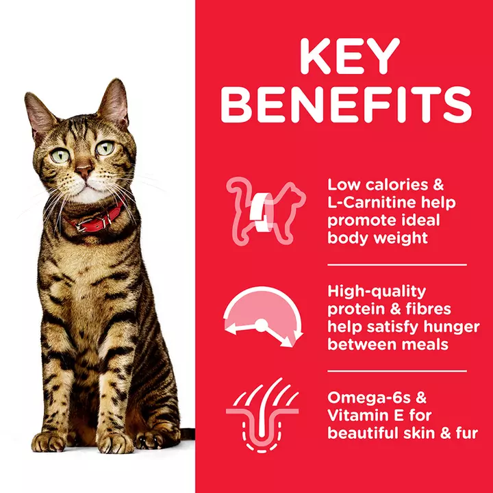 HILL’S SCIENCE PLAN Light Adult cat food tender chunks in gravy has the perfect balance of taste and nutrition for less active adult cats requiring a low calorie food to maintain a healthy weight & lifestyle. Low calories & L-Carnitine help promote ideal body weight, high-quality protein & natural fibers help satisfy hunger between meals and Omega-6s & Vitamin E for beautiful skin & fur.