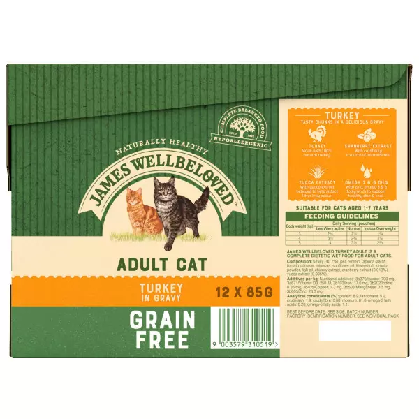 Using all our knowledge and experience of cat food, weve created James Wellbeloved Turkey Adult Cat Wet Pouch; a cat food in gravy.