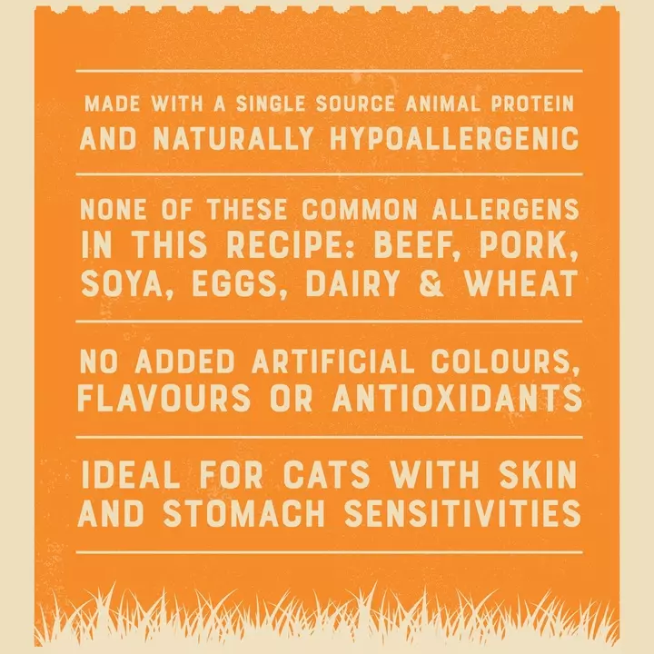 For added peace of mind, its naturally hypoallergenic so less likely to cause an adverse food reaction, made without cereals such as rice and barley for those more sensitive cats and you will never see any added artificial colours, flavours or preservatives.