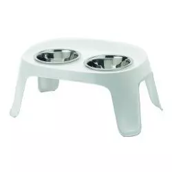 Help your pet eat and drink in more comfort with the MODERNA Skybar. Rattle free rims support the bowls quietly, while the easy pick-up sides offer a safe grip for moving around. Skybar’s non-slip rubber feet prevent slipping and tipping over, delivered with stainless steel bowls for increased hygiene. Wash frame with warm soapy water for everyday convenience. Made out of food approved, BPA free, non-toxic premium plastic. Available in three sizes to suit most breeds.