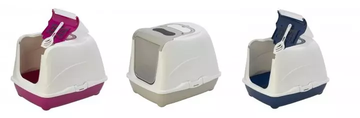 Petface Hooded Cat Litter Tray Blue/Grey/Pink