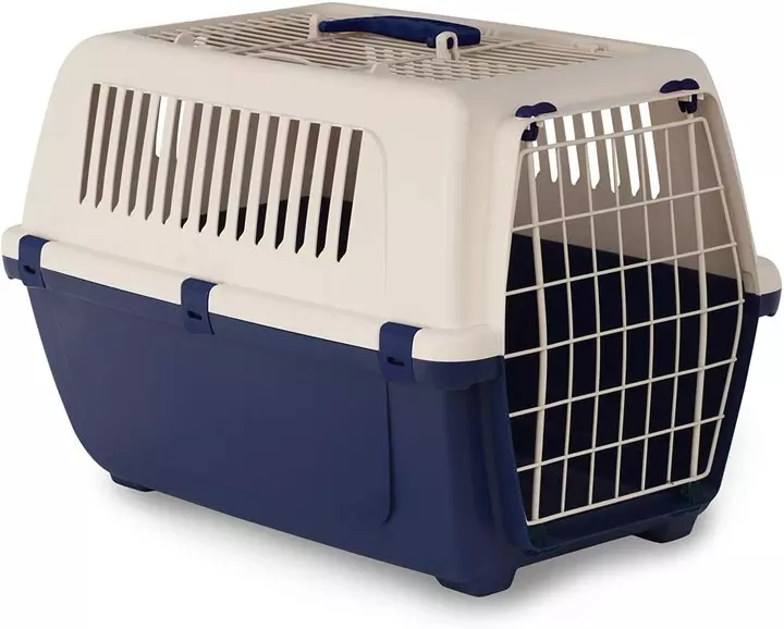 A stylish and sturdy pet carrier. With a front door that can adjusted to open either to the left or right, and a top opening door.