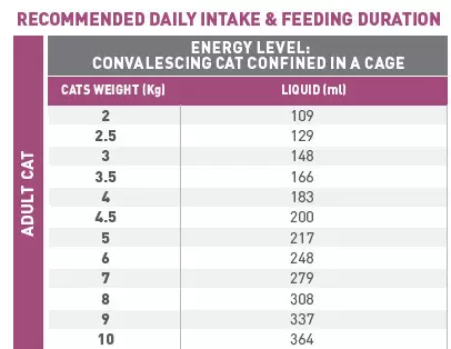 - Complete and balanced liquid diet to support the renal function in case of renal insufficiency, for cats requiring assisted enteral nutrition.